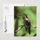 Hummingbird de cauda larga com garganta vermelha iridescente.