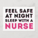 Sinta-Se Seguro À Noite, Dorme Com Uma Enfermeira Uma enfermeira engraçada, doida, fofa, dizendo uma citação em texto rosa quente e preto.