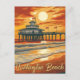 Capture o charme eterno de Huntington Beach com este poster viagens vintage baixável. Esta design de arte vetorial mostra a cena icônica do surf de Huntington Beach, perfeita para adicionar um toque do estilo retrocaliforniano à sua casa.