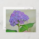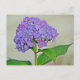 Este cartão-postal apresenta uma bonito flor azul de hydrangea.