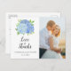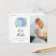 Estes obrigados de casamento que vocês postais apresentam um design floral de cor-d-água moderno com hífenes azuis e folhagem. Personalize-os com o seu próprio texto e fotografia. Material de papelaria correspondente também disponível.