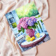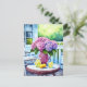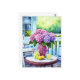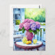 Cartão Postal Hydrangea roxa com limonada em varanda