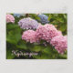 Hídrangas elegantes florescem em pinks, mauve e cores azuis suaves acendem este cartão-postal. Um belo cartão postal para um amigo ou para a sua própria coleção.