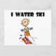 Um design de esqui de água bonitinho com figura de palito macho em esquis d'água e texto que diz "I Water Ski" em T-shirts, canecas, capas de tanques, cartões, adesivos, sacos de tote, ímãs e muito mais.