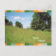 Ich caixa Postkarten, Sommer em Farbe. Die Karte Ich caixa fröhlich zeigt eine Sommerwiese mit blauem Himmel und Bäumen im Hintergrund.