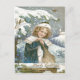 Hora de celebrar as férias. Este impressão natal vintage representa uma garotinha bonitinha brincando na neve.