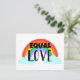 Esta trabalho de arte apresenta um arco-íris, nuvem e texto "Igual amor" desenhado à mão.