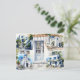 Imagem aquosa de 5 cenas da Ilha de Mykonos, Grécia. Um plano de fundo branco suave completa a configuração no verso e na frente