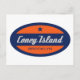 Design de sinalização oval com os bairros da cidade de Nova York. Cores oficiais laranja e azul de NYC. Bairro de Coney Island no Brooklyn.