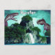 Dois grandes dinossauros realistas estão dominando esta ilha flutuante enquanto a queda-d-água pacífica flui para o belo mar abaixo do céu tempestuoso, desconhecendo o dinossauro massivo que está bem escondido abaixo da água apenas esperando para subir e surpreender tudo.