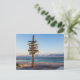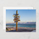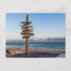 Sinais direcionais de madeira em vara em bela praia de areia branca tropical