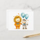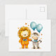 Cartão Postal Ilustração aquosa de Leão e Zebra com Bal