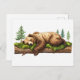 Cartão Postal Ilustração da Floresta do Urso Grizzly Dormindo em