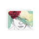 Design de ilustração retrógrada vintage de uma garota com chapéu vintage com uma flor vermelha grande. Este design retrô é elegante, feminino e sofisticado e tem uma sensação de moda antiga.