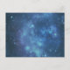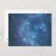 Uma ilustração gráfica do espaço em blues escuros e claros e roxas negras. Representação artística da vastidão do espaço com estrelas, nuvens, nebulosas e galáxias brilhando e iluminando os extremos do espaço com uma atmosfera sonhadora.