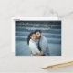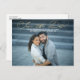 Esta elegante salvação do cartão-postal apresenta delicada caligrafia dourada e uma grande foto. Na frente, a frase "Salvar a Data" é escrita na caligrafia moderna. Os nomes dos casais, a data do casamento e a localização do casamento estão escritos abaixo. O texto em ouro e branco sobrepõe uma foto de orientação paisagística do cheio (é melhor usar uma foto com fundo mais escuro para que o texto em branco possa ser lido). No verso, mais detalhes do casamento podem ser adicionados.