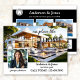 Cartão postal do marketing Imobiliário com fotos personalizadas em um layout preto e branco. Um logotipo e um modelo de código QR são adicionados para sua conveniência.