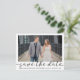 Mande nossa foto da paisagem guardar os cartões postais com uma borda branca para que seus convidados saibam bloquear sua data de casamento. Dica: se você precisar alterar o texto que está na fonte do script, você pode ir para a seção "Personalizar este Modelo" e clicar em "Clique para personalizar mais" na parte inferior. Você pode excluir qualquer uma das imagens de texto necessárias e adicionar seu próprio texto em seu lugar com o botão "Adicionar texto". Verifique nossa grande seleção de cartões salve a data de fotos, cartões postais e ímãs navegando em nossa coleção Imagem Salvar a Data!