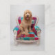 Um feliz Goldendoodle sentado constantemente em uma cadeira colorida e padronizada. Este cachorrinho fofo parece ser maior que a cadeira, mas nunca muito grande para segurar em seus braços. Com a língua a sair, virada para a câmara nesta fotografia, ele fazia o companheiro perfeito. Descubra mais cachorros bonitos aqui no Zazzle com Getty Images.