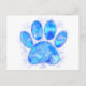 A pintura de cão de desenho em azul. Arte de estilo aquarela. Cartões postais personalizados. Ideia de presente para amantes de cães.
