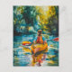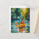 Uma ilustração digital de uma pintura aquosa de uma pessoa remando um caiaque na natureza.
