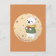 Uma bela ilustração de um buldogue francês segurando uma folha vermelha com uma citação "outono incrível"