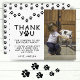 Gratidão Aniversário Cartão Postal Foto Impressões de Pata Fofas Preto e Branco para Crianças. Cartão de agradecimento de aniversário de foto fofa com impressões de patas, nota de agradecimento, um modelo de foto e o nome de uma criança. Insira sua foto no modelo e personalize com seu nome. Altere ou deixe a mensagem de agradecimento.