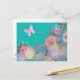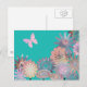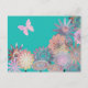 Design de turquesa brilhante, com um bonito padrão floral e borboleta rosa. Personalizável e exclusivo, este design floral é colorido e moderno.