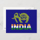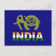 Uma imagem estilizada e vetorial de um elefante grávida. A palavra Índia é exibida nas cores das faixas da bandeira indiana. O elefante também é pintado nessas cores. A bandeira nacional da Índia, cor de laranja/açafrão da Índia (Kesari), verde, branco e azul marinho da Índia