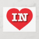 Este cartão-postal apresenta um coração vermelho vibrante contendo as letras maiúsculas, em letras maiúsculas, em negrito, branco, IN, a abreviação oficial para Indiana, o estado de hospedeiro. O reverso do cartão postal é vazio, aguardando seus sentimentos manuscritos ou texto personalizado.