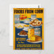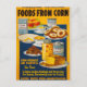 Poster mostrando uma variedade de comidas e pratos, junto com amido de milho, óleo de milho e xarope de milho.
