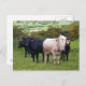 Uma manada de gado preto de angus é liderada pela vaca loira em direção ao piquenique no topo de Cley Hill.