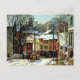 Cartão postal da Vintage, Winter in Gloucester, Massachusetts. Pintura encantadora de Frederick Mulhaupt de uma cena de inverno em Gloucester, cheia de carruagems e cavalos em uma rua de cidade coberta de neve.
