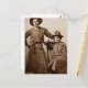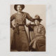 Vintage foto de duas mulheres do velho oeste. Uma está sentada e outra em pé, ambas têm saias com franjas e estão vestindo chapéus. Um tem uma arma no coldre na cintura