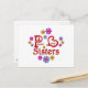 Compartilhe seu amor por aquela irmã especial e aproveite as flores coloridas, a maneira divertida de dizer Amor pela Paz, e a palavra Irmãs.