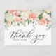 Pêssego, obrigado de tema floral. Apresenta a terra floral de aquarelas e rosas de marfim, peões e híbridos. Personalize adicionando nomes, endereço e mensagem. Este obrigado floral que você faz é perfeito para casamentos, chás, festas e muito mais.