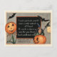 Cartão Postal Jack O Lantern Pumpkin Witch Bat Owl