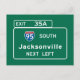 Uma placa de estrada americana original da cidade de Jacksonville, Flórida.
