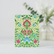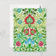 Cartão-postal em uma safra William Morris jacoban padrão floral, melhorado digitalmente e colorido, em verde-folha, vermelho-carvão e azul-ceruliano, sobre fundo branco