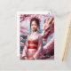 Cartão Postal Jahr des Drachen 2024 - Mädchen zwischen Kirschblü