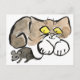 James, o gatinho, tem sua pata na cauda do rato. Felizmente seu um rato e um James do animal de estimação são certificando-se ele não funcionam afastado. Sumi-e, pintura da tinta do estilo japonês na cor. Artista - Ellen Miffitt estúdio img752 de nove vidas