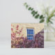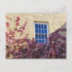 Personalizar esta alteração de cartão postal de endereço! Uma parede de adobe com uma janela branca estilo francês cercada por flores de cereja rosa. Fotografia de Minerva Bloom.