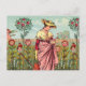 Cartão Postal Jardim Cresce Árvore Flor Antiquada
