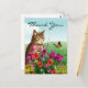 Personalize este cartão postal de gato antigo com o seu próprio texto ou compre como mostrado como um agradecimento. Este cartão postal apresenta um jardim de flores graficamente desenhado com uma sobreposição de tulipas rosa e uma borboleta. Use o cartão postal como "oi, olá, obrigado" ou outra ocasião. Você também pode remover o texto. Este cartão postal foi criado a partir de um dos meus desenhos de colagem.