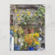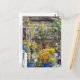 Um jardim floral colorido ao lado de um barco estreito ancorado no Canal Rochdale na ponte de Hebden, West Yorkshire, Inglaterra