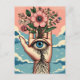 Cartão Postal Jardineiros Surreais Mão Com Flores Rosa