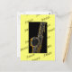Ilustração de jazz. Um saxofone em preto-e-branco com realces dourados e fundo preto em amarelo com a palavra "jazz". Excelente para amantes de jazz!