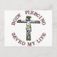 Jesus na cruz com as palavras "Body Piercing Saved my Life"