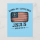 Jesus está voltando, esta design cristã mostra uma bandeira americana com uma cruz e as palavras "normal não está voltando, Jesus está, Revelação 14.