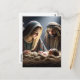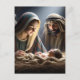 Mary, Joseph e Jesus bebê no cartão-postal religioso de Natal. Dentro a carta é o verso Bíblia "E havia pastores no campo, vigiando à noite. E um anjo do Senhor apareceu para eles, e a glória do Senhor brilhou ao seu redor." - Luke 2:8-9.